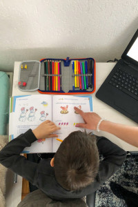 Harun je sjeo za svoj radni sto da ispuni današnje obaveze, pa će onda učiteljica, koja je sada u ulozi roditelja, uslikati njegov rad i poslati ga njegovoj učiteljici, što i roditelji djece iz njenog razreda rade poslijepodne.